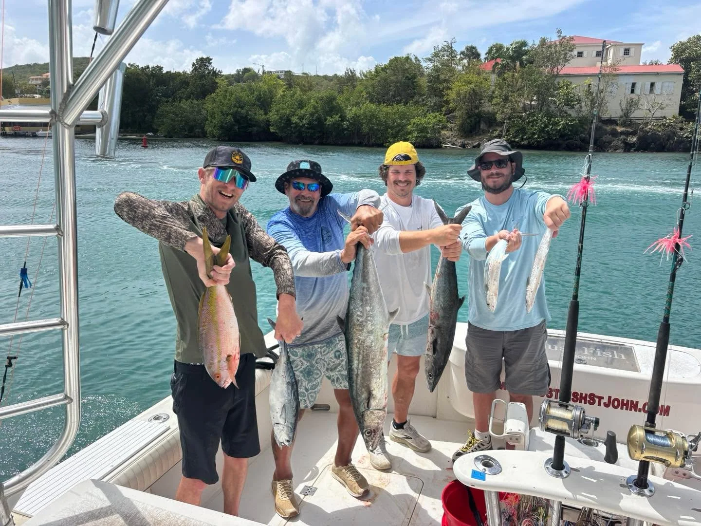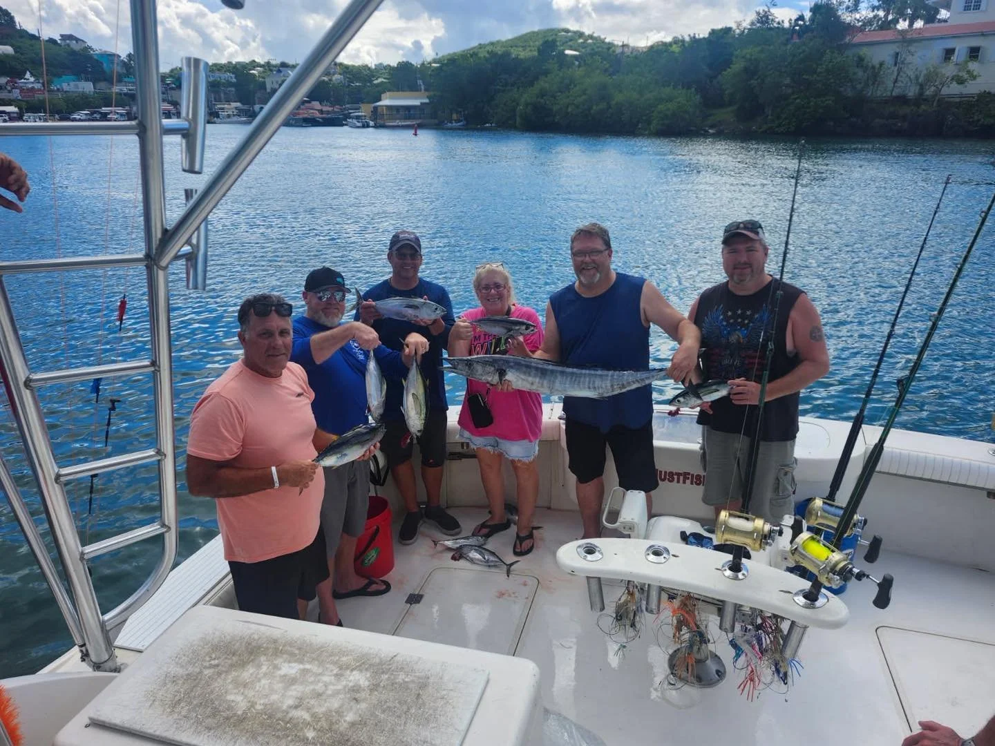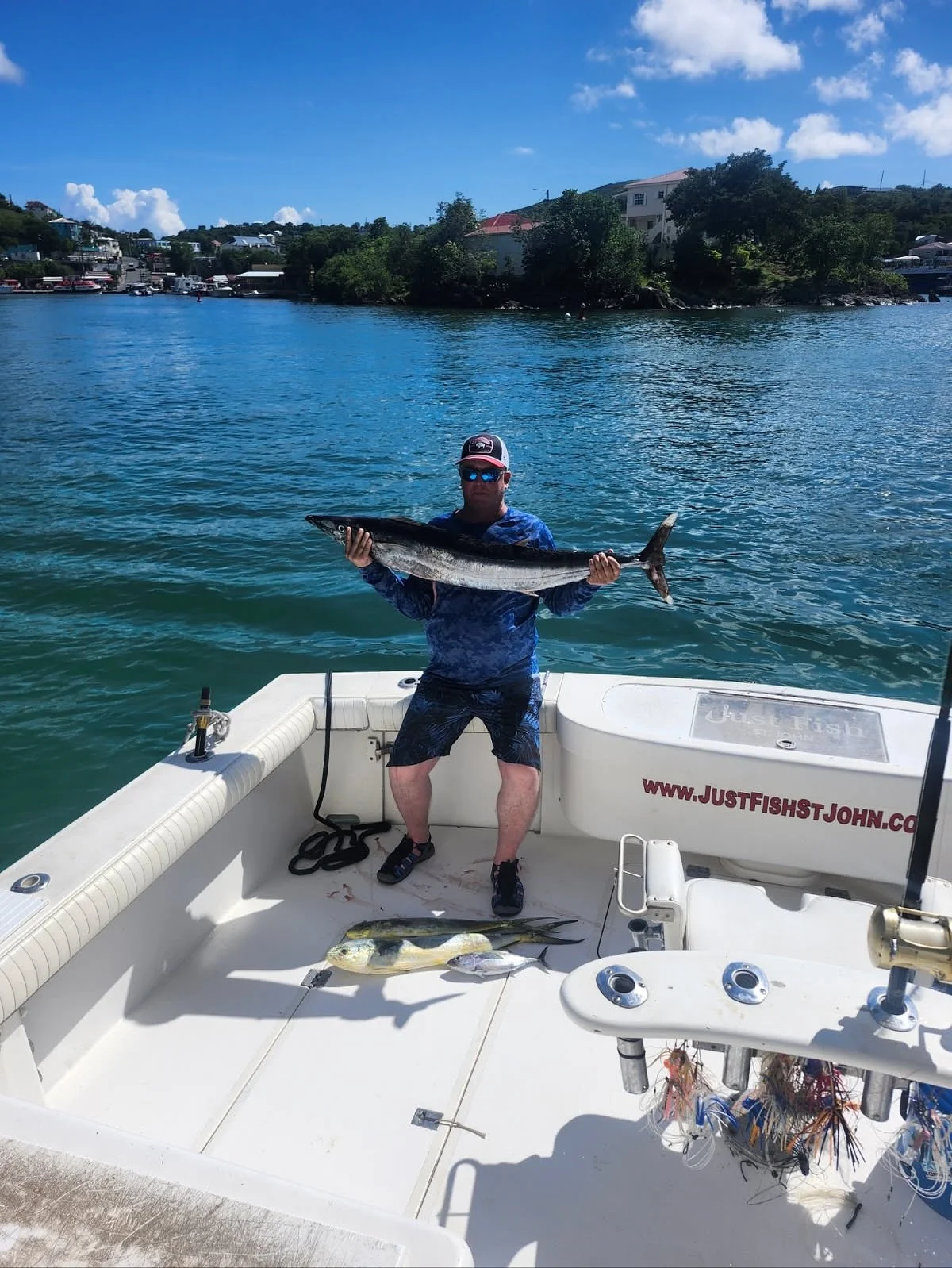 Come out and enjoy a great day of fishing with St. John's most highly recommended fishing charter boat company βJust Fish St. John.β We specialize in trolling for big game fish such as Blue Marlin, White Marlin, Sailfish, Yellowfin Tuna, Mahi-Mahi, and Wahoo. We also offer St. John inshore fishing charters that target bonito, barracuda, rainbow runner, yellow tail snapper, kingfish, and sharks that are swimming in the area. We are a family friendly St. John fishing charter and also welcome aboard serious anglers looking to fight big fish! All fishing boats offer plenty of comfortable dry and shaded seating for up to 6 anglers. We are fully equipped with all of the top-of-the-line fishing gear and equipment required for a successful day on the water catching quality fish. Please give us a call today to book your next St. John sportfishing adventure.