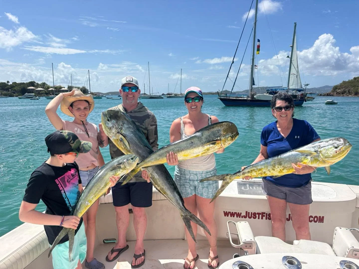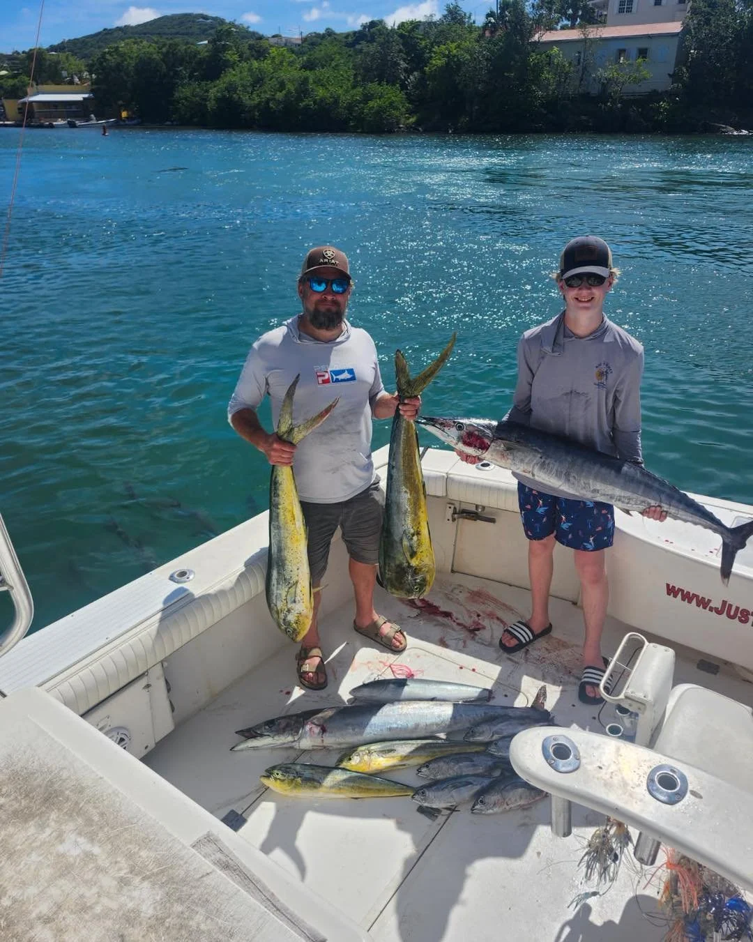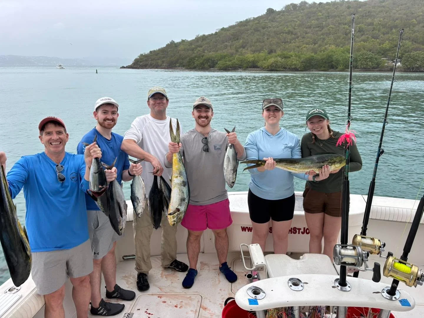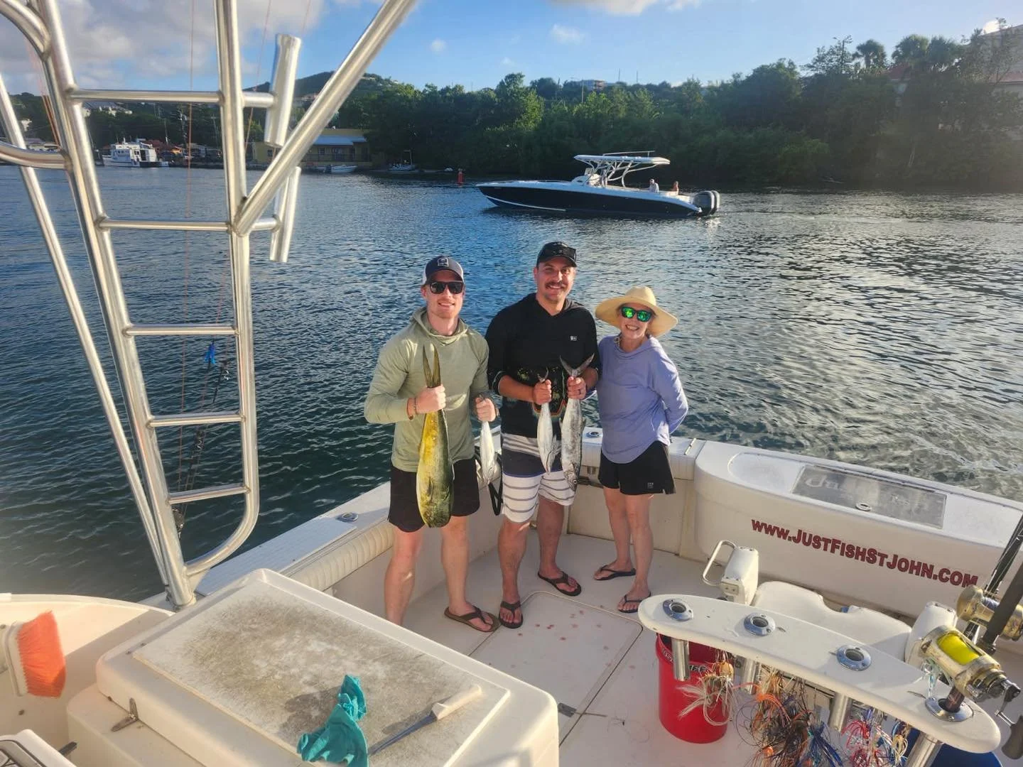 Come out and enjoy a great day of fishing with St. John's most highly recommended fishing charter boat company βJust Fish St. John.β We specialize in trolling for big game fish such as Blue Marlin, White Marlin, Sailfish, Yellowfin Tuna, Mahi-Mahi, and Wahoo. We also offer St. John inshore fishing charters that target bonito, barracuda, rainbow runner, yellow tail snapper, kingfish, and sharks that are swimming in the area. We are a family friendly St. John fishing charter and also welcome aboard serious anglers looking to fight big fish! All fishing boats offer plenty of comfortable dry and shaded seating for up to 6 anglers. We are fully equipped with all of the top-of-the-line fishing gear and equipment required for a successful day on the water catching quality fish. Please give us a call today to book your next St. John sportfishing adventure.