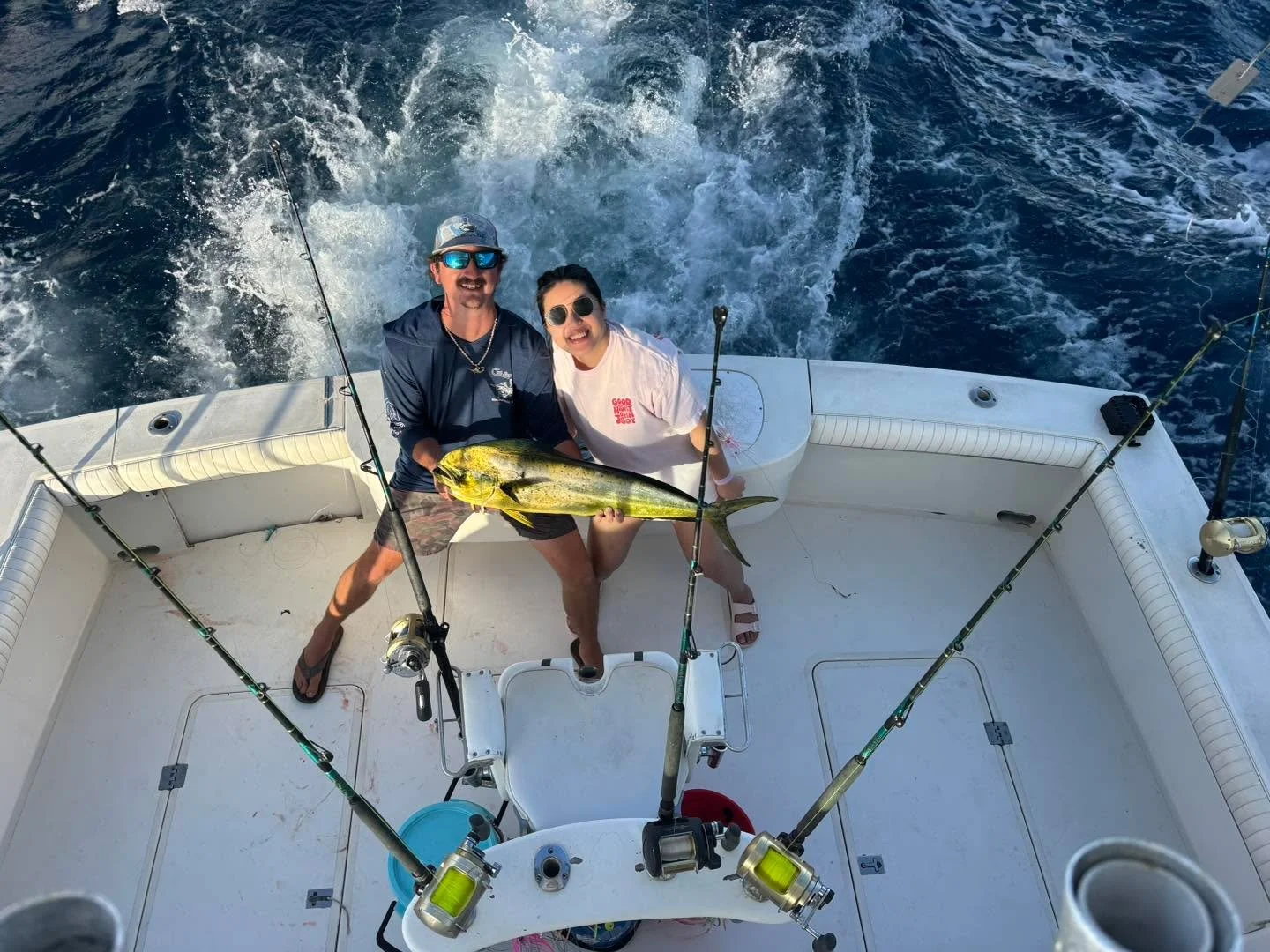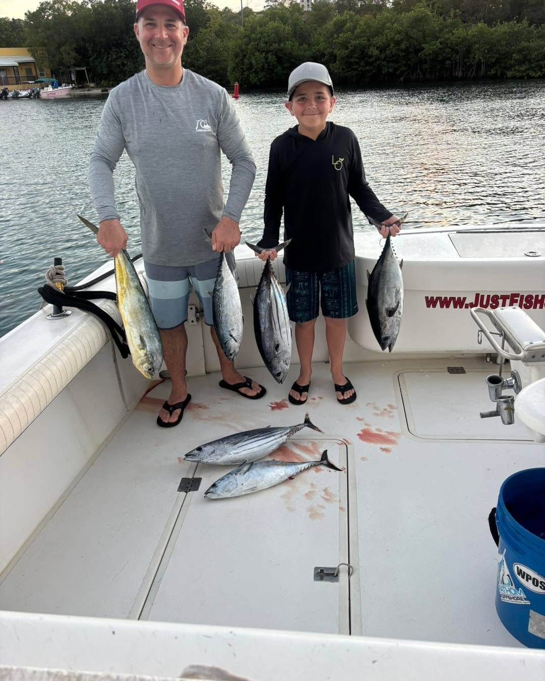 Just Fish is 42' Liberty custom express St. John fishing vessel. The layout provides plenty of shade and comfortable seating for a day on the water. Powered by twin Cummins diesel engines, she gets us out to the fishing grounds quickly and comfortably.Β