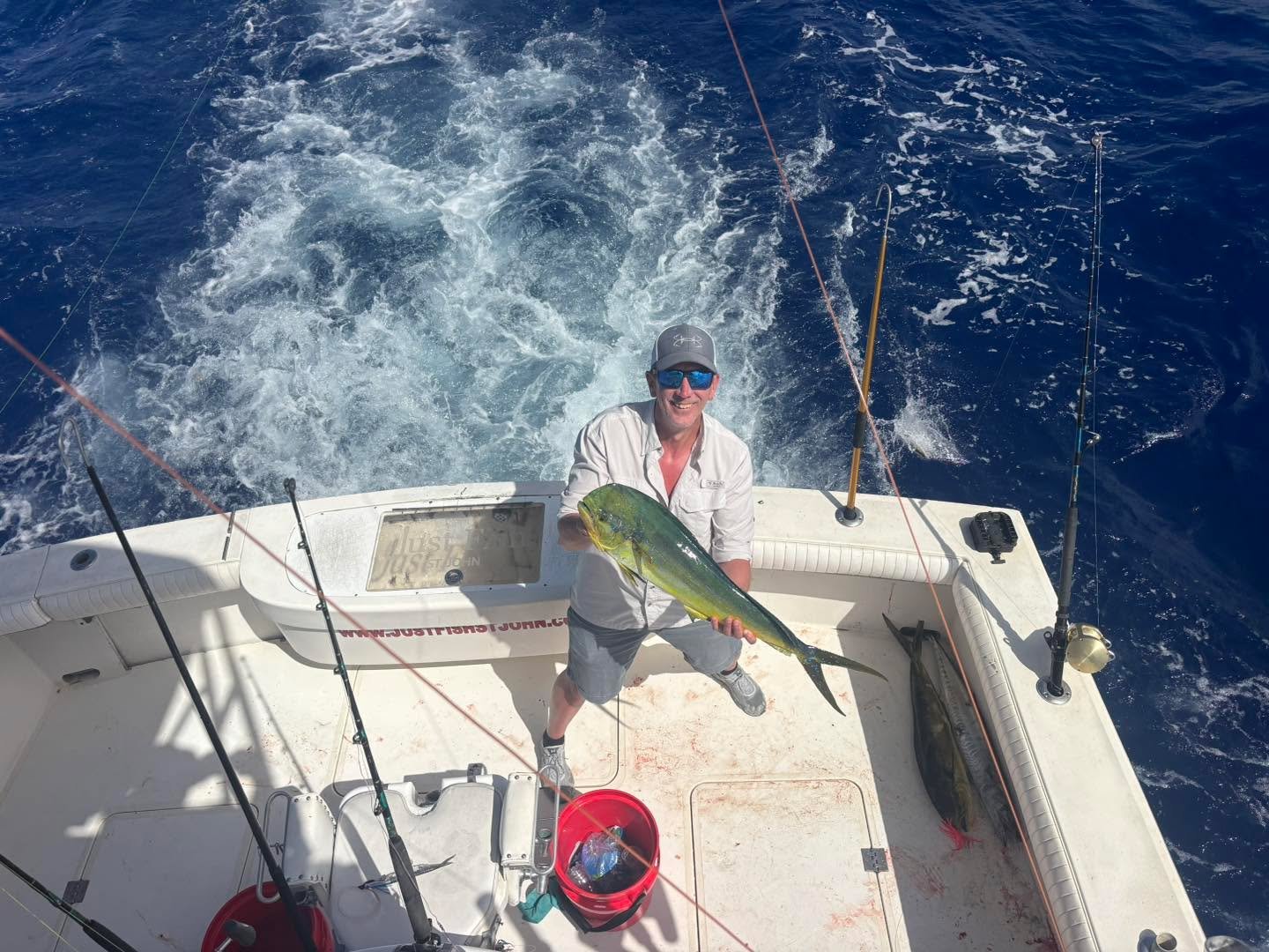 Equipped with a full head and lots of dry storage down below, Just Fish has all the amenities for a great day off the coast of St. John, USVI. A large live well keeps the bait ready for the fishing action. The boat features a large 100 ftΒ² cockpit, offering plenty of room to reel in your catch, whether it be from the fighting chair or using stand up fishing gear.Β
