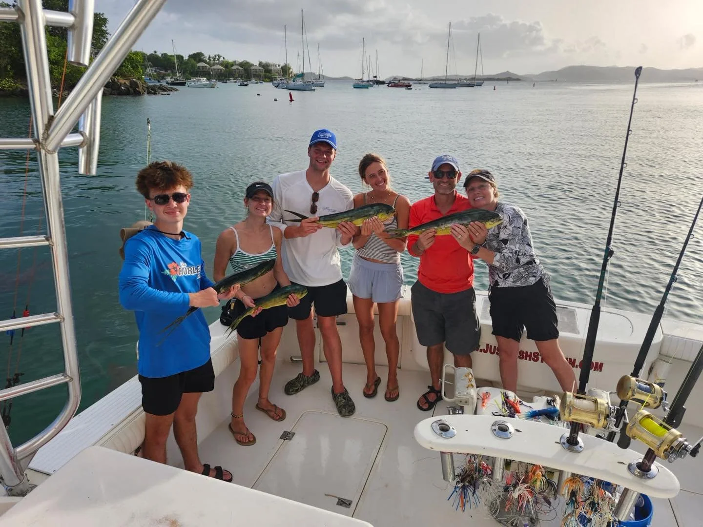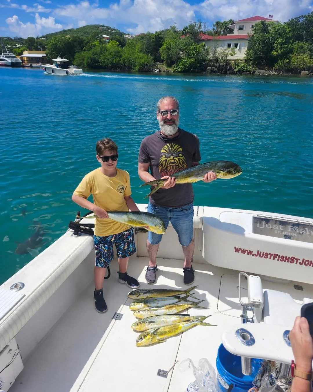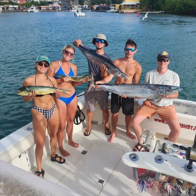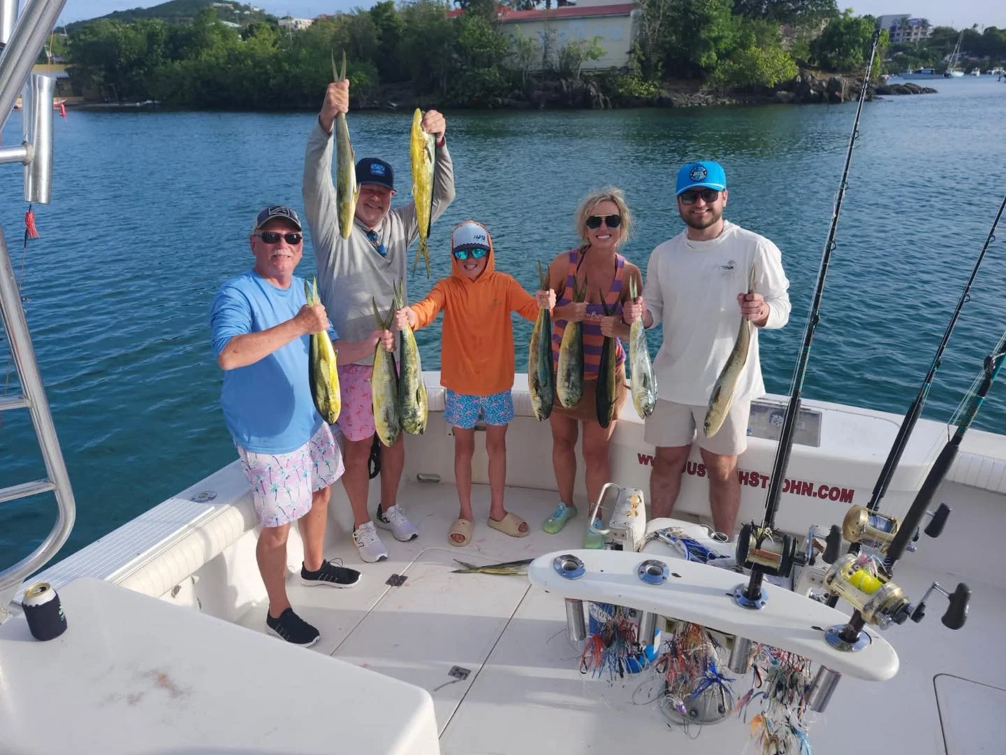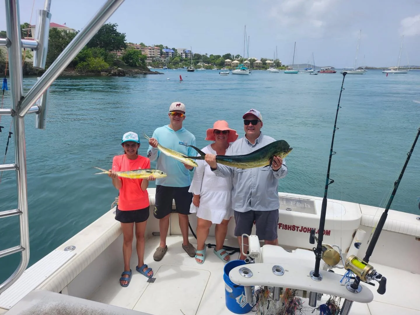 Come out and enjoy a great day of fishing with St. John's most highly recommended fishing charter boat company βJust Fish St. John.β We specialize in trolling for big game fish such as Blue Marlin, White Marlin, Sailfish, Yellowfin Tuna, Mahi-Mahi, and Wahoo. We also offer St. John inshore fishing charters that target bonito, barracuda, rainbow runner, yellow tail snapper, kingfish, and sharks that are swimming in the area. We are a family friendly St. John fishing charter and also welcome aboard serious anglers looking to fight big fish! All fishing boats offer plenty of comfortable dry and shaded seating for up to 6 anglers. We are fully equipped with all of the top-of-the-line fishing gear and equipment required for a successful day on the water catching quality fish. Please give us a call today to book your next St. John sportfishing adventure.