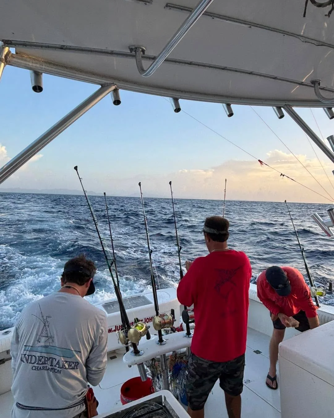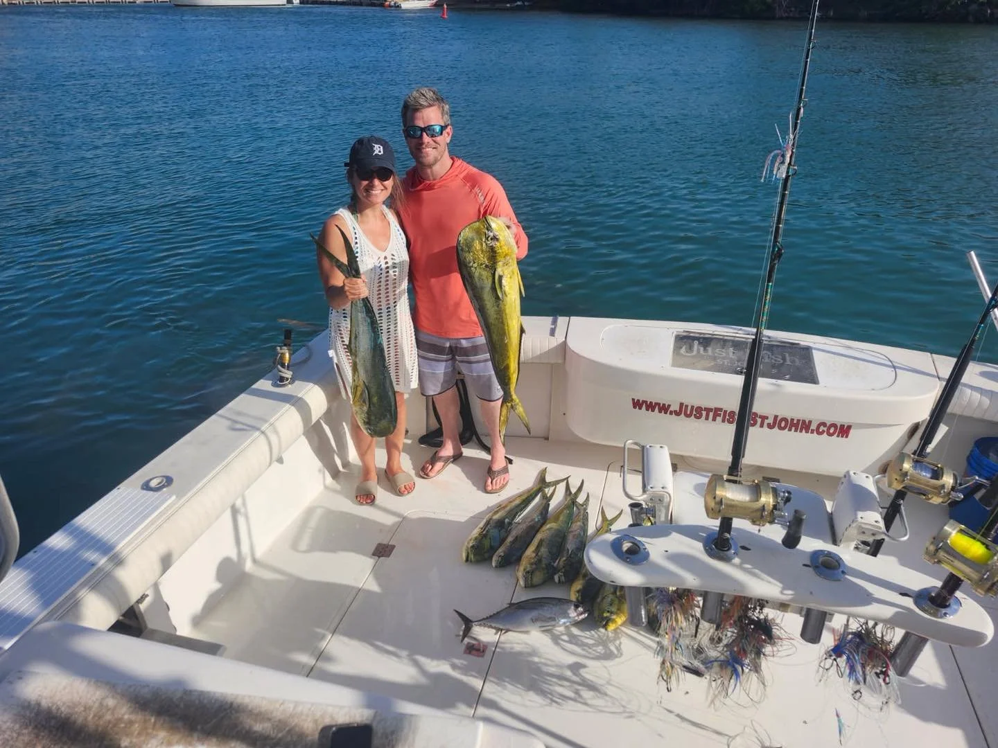 Just Fish is 42' Liberty custom express St. John fishing vessel. The layout provides plenty of shade and comfortable seating for a day on the water. Powered by twin Cummins diesel engines, she gets us out to the fishing grounds quickly and comfortably.Β